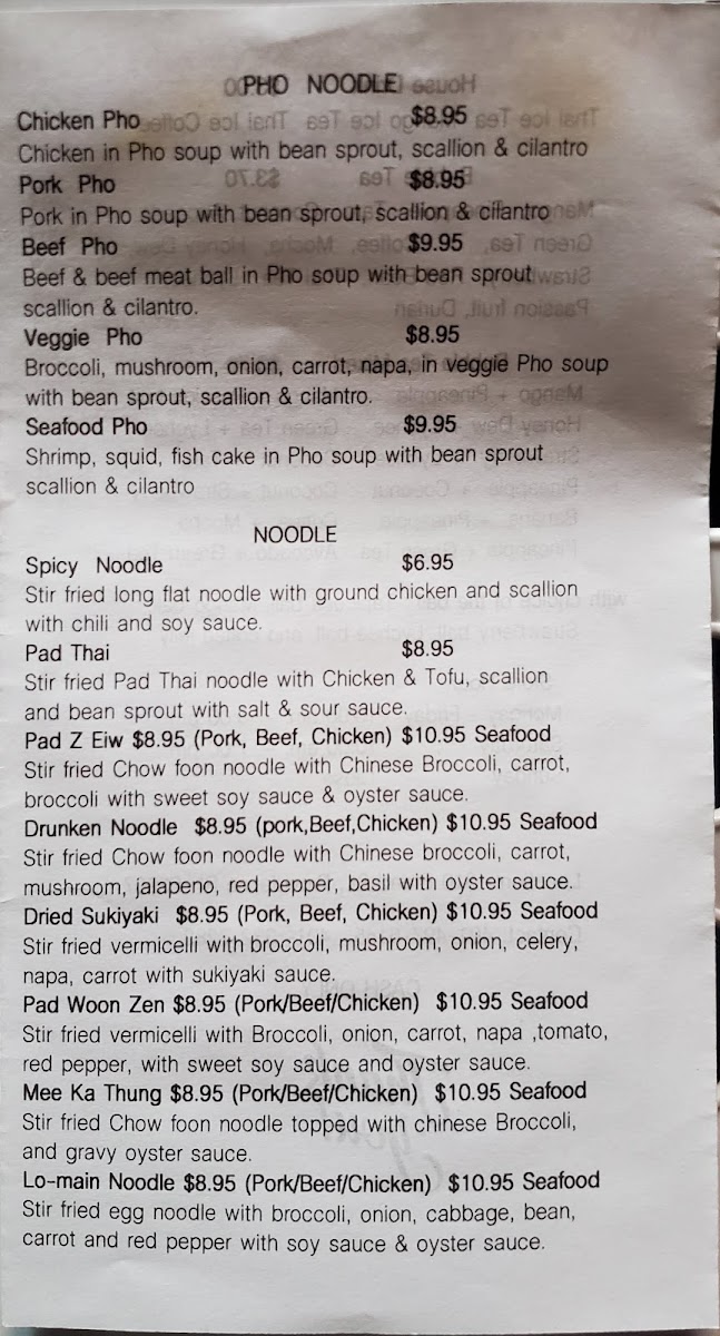 The menu also includes traditional Vietnamese dishes such as pork pho, beef larb, Thai-style papaya salad, and chicken wings. Light bites and side orders like egg roll veggie and steamed rice complement the main dishes. Some menu items feature a savory or spicy profile and provide a variety of protein choices including beef, pork, chicken, and tofu.